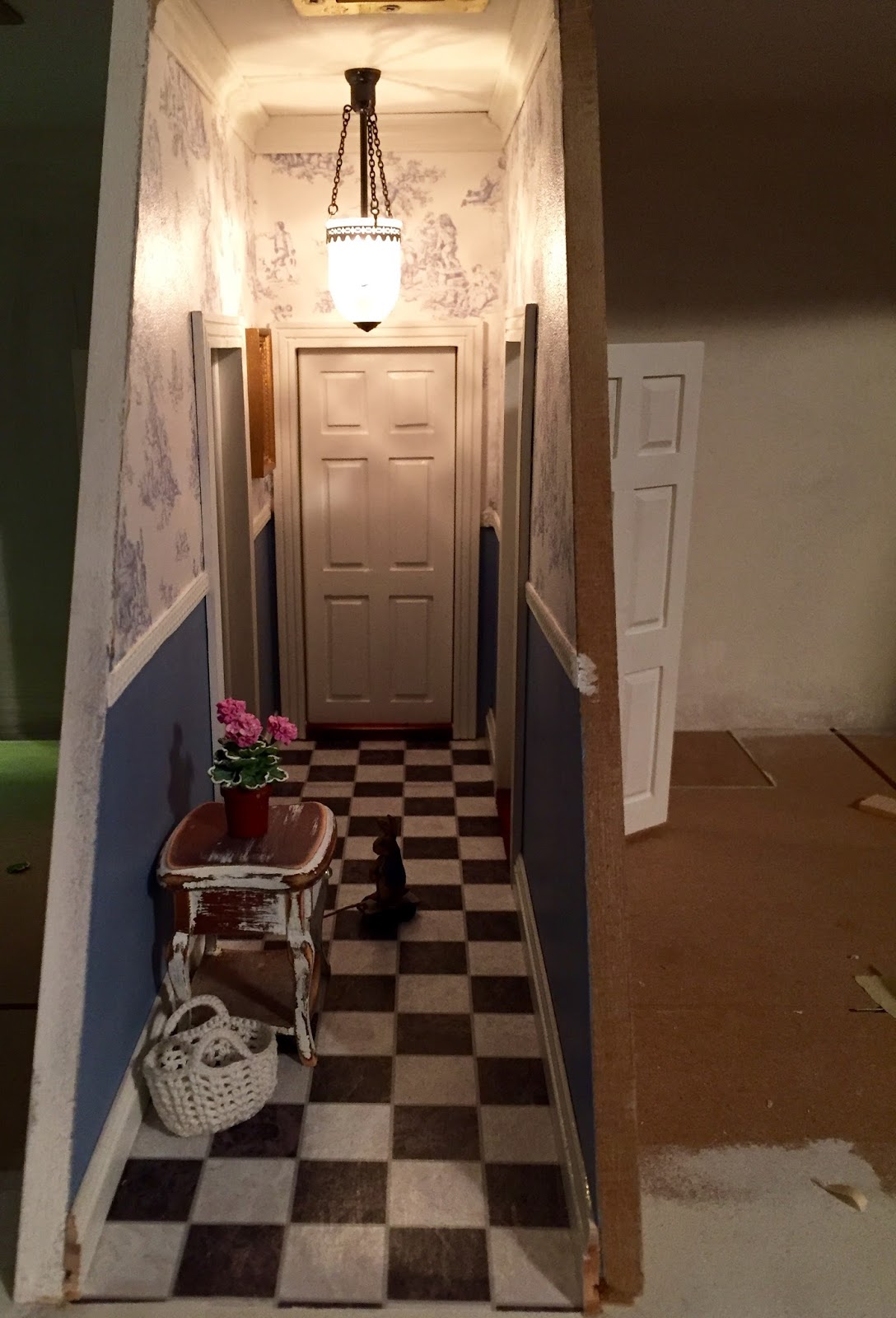 Nanny kommer för att inspektera. Hennes rum kommer jag nu att påbörja som ni ser till höger. Barnens rum blir rakt över hallen.